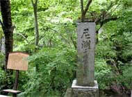 昔、城下町に近い柳原に藤という娘がいた。 その娘には想いを寄せる男がいて、滝向こうの不動尊へ祈ってその恋が叶うようにと願かけ参りをし、その満願の日の夜、背に火焔を負った不動明王が突如現わ れ、「東山の入口にある松の三又の古木がる。その枝に石を投げて縁の有無を試しなさい。石が松の枝に留まれば願いが叶えられ落ちたらあきらめなさい。」と いって消えた。 娘はその松の木の下に来て一心を込めて石を投げてみたが、石は枝に留まらなかった。 無念に思い、狂気の如く石を投げても、石は留まらず娘は悲嘆のあまり渕に身を投げてしまった。 よって藤身ヶ滝と呼ばれるようになった。現在では、伏見ヶ滝と変わり、その松を石上松と呼んでいた。 今では、その松は大雪の年に雪倒れしてしまった現在ではもうなくなってしまった。